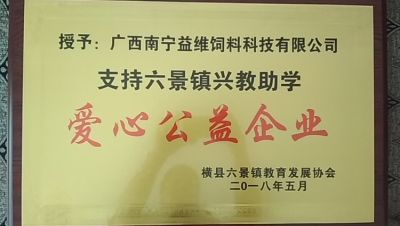 授予:廣西南寧益維飼料科技有限公司愛(ài)心公益企業(yè)